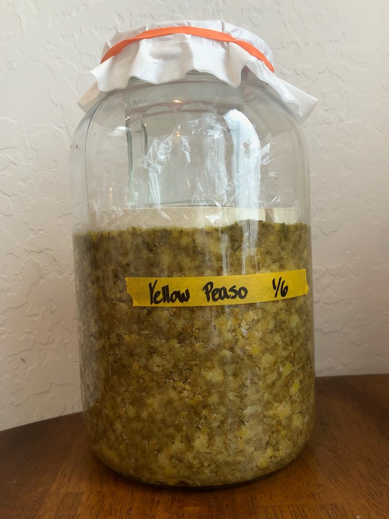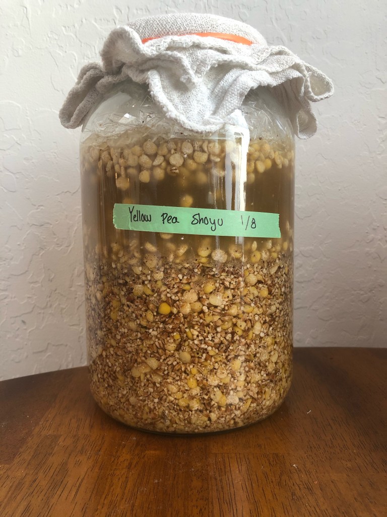 The next victim of my fermenter imposter syndrome was the shoyu that I made earlier in the week. I had inoculated cracked, toasted wheat and yellow peas with koji spores on the 6th. After 24 hours, it did not look like the mold grew much, in part because I think the mixture was quite dry, and also because the recipe recommended keeping the mixture cooler than a normal koji. By hour 48, I don’t think the mold had fully grown or penetrated the peas. However, I still mixed the peas in brine and hoped for the best. Now, however, I’m thinking its not worth just hoping for the best with a ferment that takes over 100 days. I don’t want to get to the end and realize it’s all wrong. So I have decided I’ll start all over again next week.