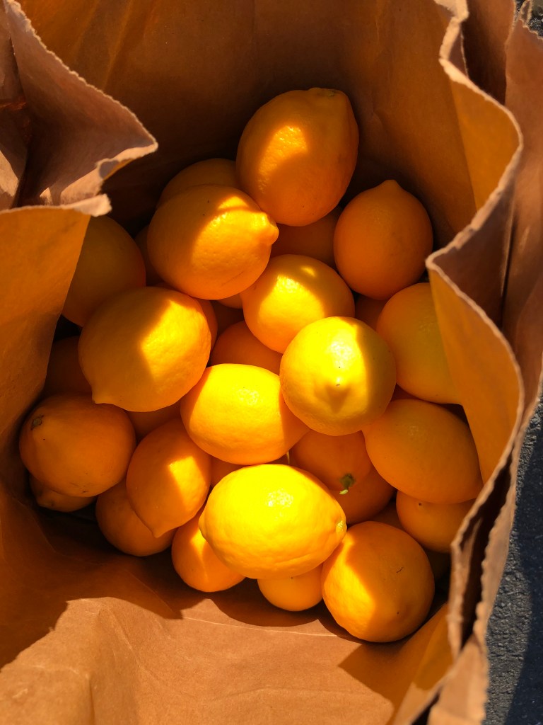 The winery that I work at in Sonoma told me I could take home some of the meyer lemons from the tree in the parking lot, so I picked as many as I could (about 12 lbs) while suffering quite a few torn pricks (who knew that lemon trees had thorns?). I decided, because of my dwindling fridge space and lack of inspiration, to turn the meyer lemons into marmalade. In my tiny kitchen, and even tinier pots, I made 5 batches of marmalade this week. As a result, I didn’t do much other cooking. I had intended to start actually using the ferments that I have been spending so much time and energy making, but it felt unfair to my housemates to occupy even more kitchen time.