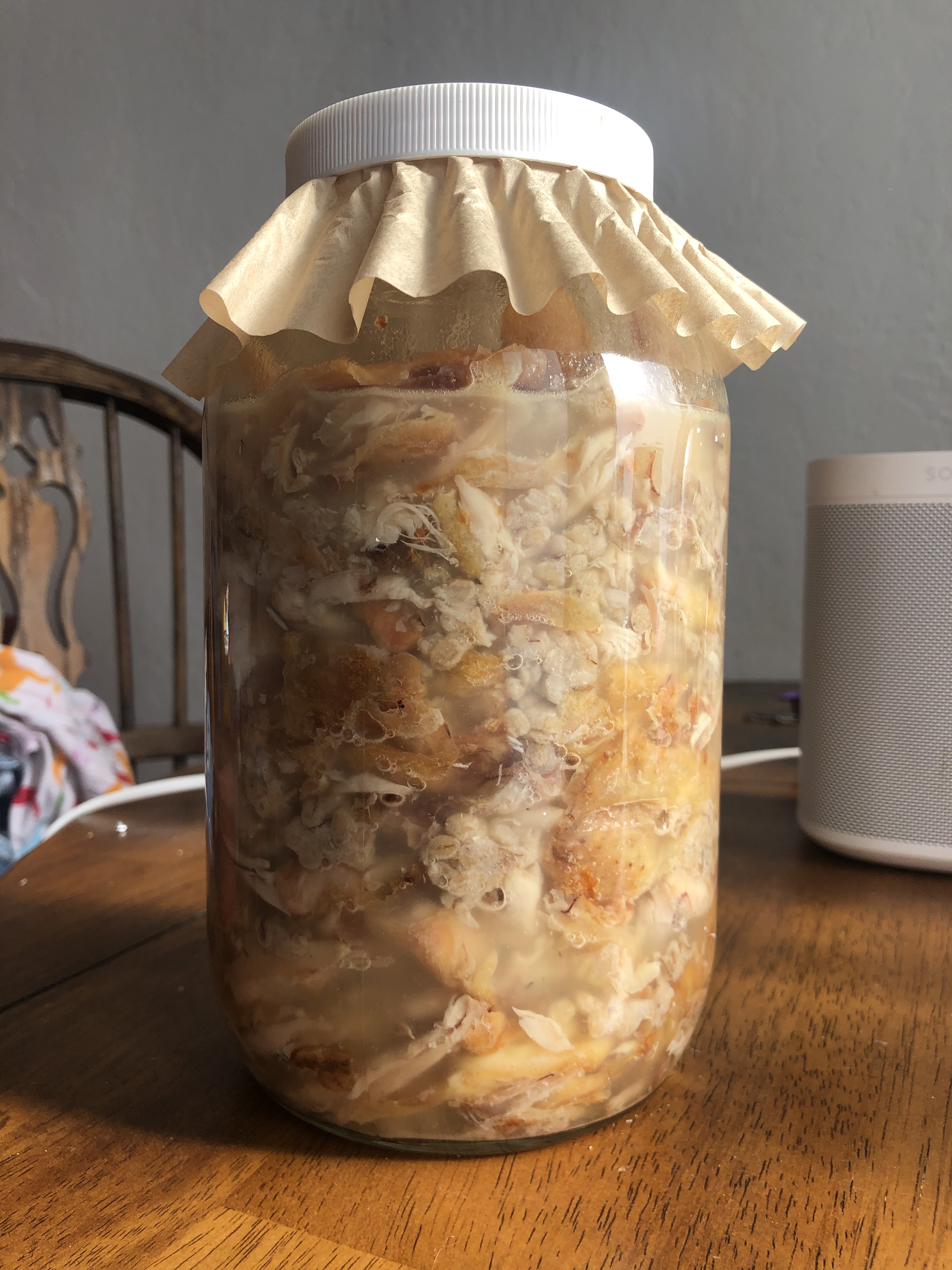 At the moment I only have two jars in the works in the kitchen, which is the least amount of ferments that I’ve had going in a really long time. I am all done with the kombucha ferments from the book, so I am back to making kombucha exclusively to bribe my housemates. However, now that the squid smell is gone and so are many of my jars, I feel like they aren’t quite earning their kombucha like they used to. I do currently have a lot of finished ferments that are waiting to be used. My fridge is feeling quite full, so putting those ferments to use is on my to do list for this week. Once I have sufficiently used my finished ferments, I am planning on tackling the lacto-ferments in the book. These are pretty hands off, but fast, ferments, completing in only a week. With any luck I will also figure out my vinegar situation this upcoming week.
